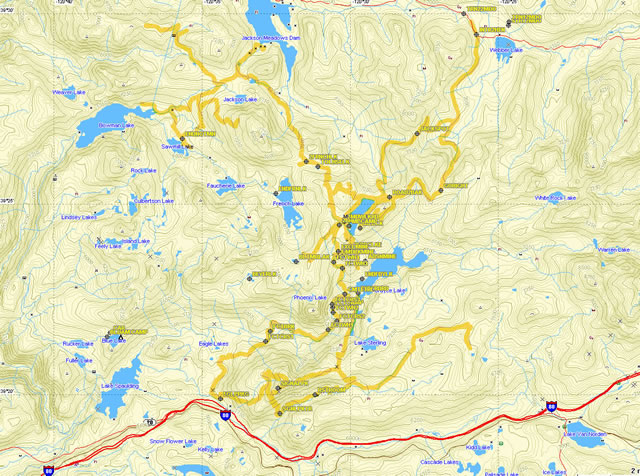 | As you can see...not only is the Fordyce Creek Trail one of the toughest around, but there is LOTS of riding in this area...as seen by all the yellow. |