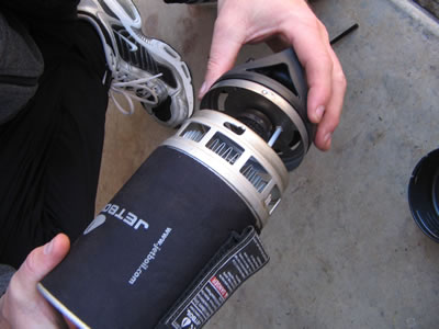 One of the most difficult elements of ATV camping is SPACE, SPACE and SPACE! You don't have much space on the ATV to bring everything you want to bring. There's only so much real estate for sleeping bag, tent, tarp, clothes, drinks, ice, spare parts and food. Food! Great....I've got food...but where am I possibly going fit a stove to cook it!! MRE's and similar dried foods still need water to be heated. The question is...How? That trusty coleman stove and some white gas or propane isn't going to cut it. Well, unless you want it to strap it to your helmet! In steps, Jet Boil. On a recent trip to the Dusy-Ershim Trail, we had to figure out how to camp for 4 days on ATV's. Space was at a MAJOR premium. Steve and I ran into each other at REI to pick up some final items. I already had a small propane one burner stove, but Steve had nothing. Since Steve was in charge of coffee, and not wanting my wife to kill him, Steve and I noticed Jet Boil among all the smaller backpack type stoves. It seemed like a cool item, but would it work as well as its name? Over the course of 4 days, the answer was a resounding YES! Jet Boil turned out to be worth every penny. As many of us have discovered on our search for "SMALL", it seems the smaller the device gets, the more expensive it becomes. Jet Boil wasn't any different, but for the money it delivered. Setting up the Jet Boil was a piece of cake. The unit comes all together, stacked inside of the main cook 'cup'. You simply pull the main burner out of the cooking pot/cup. Then pull the Jet Boil fuel out of the bottom. Once you have those two pieces out, you're ready to start assembly for cooking. Once assembly is complete, you just need some water. No need for match...the Jet Boil features it's own self-lighting mechanism, which works flawlessly. But many units have that, so it's no extraordinary feature. What sets the Jet Boil apart from the rest...is SPEED! The Jet Boil is fast...there's no two ways about it. It was amazing how fast the Jet Boil attacked the water to bring it to a boil. We really put the Jet Boil to the test, as we were camping at 9,100 feet in elevation. It didn't matter, Jet Boil didn't seem to care about the lack of oxygen at 9,000+ feet. We were ready to put our MRE into heat way ahead of all the standard propane burners. It wasn't even close. Additionally, Jet Boil boiled the water so fast, it seemed to hardly use any fuel. Initially, we were a bit concerned the Jet Boil would gobble up it's relatively small fuel cannister too quickly for our 4 days in the mountains. But the Jet Boil handled all the meals over 4 days and countless cups of coffee. We never even needed our second cannister.